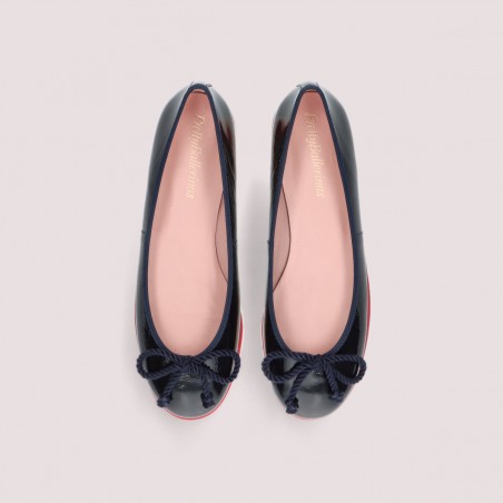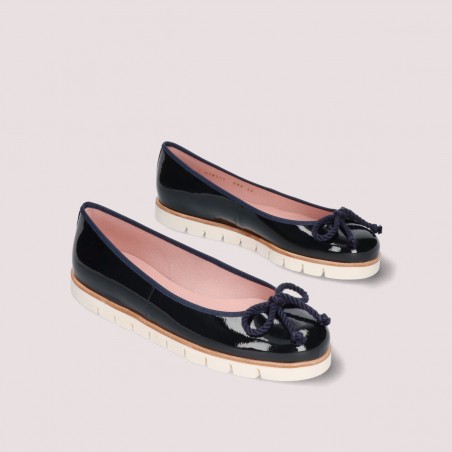 Our popular Rosario with toothed white rubber sole in navy blue patent. More support for the walkers!