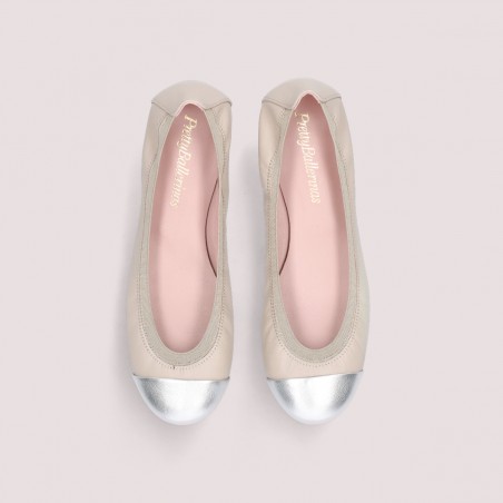 New Shirley combo of taupe soft leather with metallic silver toe cap. . Runs small, we suggest you to buy 1/2 size up