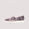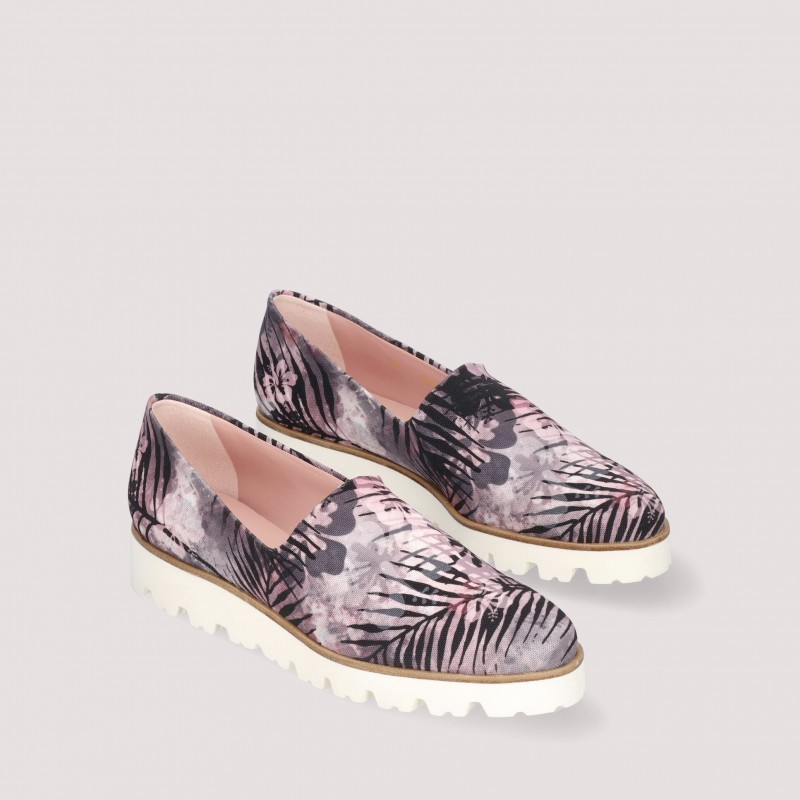 Elasticated loafer with a 3cm extra light rubber sole in breathable fabric with leather lining and insole. Tropical floral wit white sole. The best replacement to your sneakers!