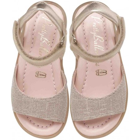 Glitzy make up pink textile with gold leather, rubber sole, leather insole
