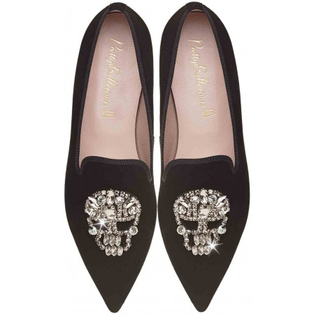 Super soft black suede with crystal skull detail, rubber sole, leather insole and