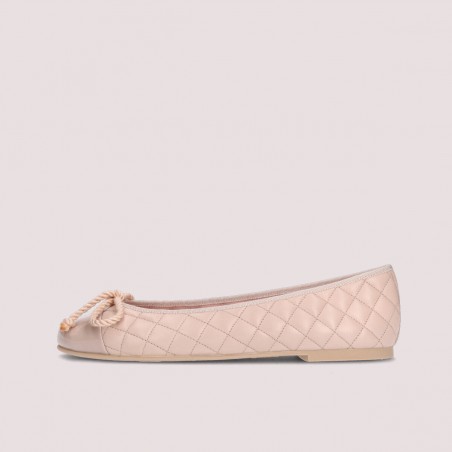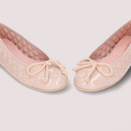 Our Rosario flat in nude quilted soft leather and nude patent toe, for any season