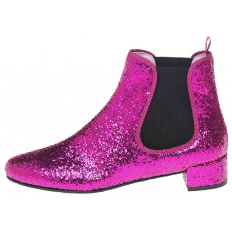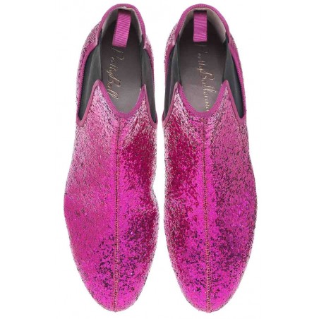 Fuchsia glitter with rubber sole, leather insole and lining