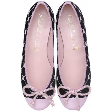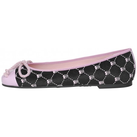 Black velvet covered in pink rubber ballerinas with pink patent leather toe, rubber sole, leather insole and lining